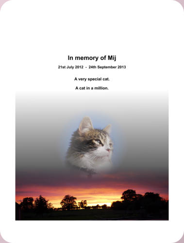 that none of our other cats ever achieved. It is as a memorial to Mij that I have collected together his diary notes and